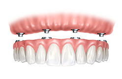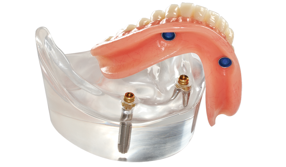 Para alguns pacientes que apresentam ausência dentaria em todo o arco dentario, maxila ou mandibula, pode-se se instalar 2 a 4 implantes e, sobre esses implantes, confecciona-se uma overdenture (sobre dentadura) que é removível e fácil de higienizar.